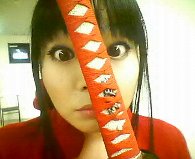 愛刀、菊一文字さんと。毎回「卍解」してから舞台に立ってました。衣裳ともども真っ赤っか。