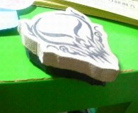 私はひとつも器用じゃありません。 キミジャグのみんなもそれを分かっているので、彫刻刀やノコギリの類は一切持たせてもらえません。 何故か段ボール箱で指を切ったという前科があるからです。刃物ではなく、段ボール箱で。 血を流してる私を見て、みんな「???」ってなってました。 「え?段ボール箱を切ろうとして、カッターとかで切ったんじゃなくて?ただの段ボール箱で?何で?バカなの?」って言われました。 最近はカッターの使用すら規制がかかってます。ぎりぎりのラインでハサミは使っていいそうです。 先日、「器用な人ってすごいなー」と思った出来事。 エビが作ってくれた、「ムクロ」の刺青の消しゴムハンコ。 「ムクロの刺青」について、詳しくはこちら→「骸」の話。 細かいところまで彫ってて、すげえ! ダイスケが木材を切り出してくれて…。 使用方法のよく分からない特殊なボンドで目原さんがくっつけてくれた!! めっちゃ押しやすくなった!!すごい!!お店で売ってるハンコみたい!! そうなんです。周りに手先の器用な人がたくさんいるから、自分が器用じゃなくても大丈夫なんです。 ただ「役立たず」扱いされるだけです。 それだけのことです。