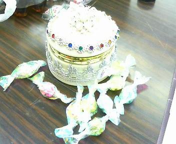 「チョコレートの舞台」 冗談から生まれた「KIMICHOCO」 ミルク・ホワイト・ストロベリーの3色です。私はホワイトが一番好き。 最初は舞台を森の中にしようと思ってたんですけど、ファミレスで「どんなパネルにしますか」と聞かれて、冗談で「板チョコにしてください」と答えたのが始まり。 そこから舞台美術の作業に加わってなくて、本番近くになってマジで板チョコで話が進んでた事を知りました。 冗談を本当に変えてくれるキミジャグ美術部。 人はそれを魔法と呼ぶんだぜ。 「パップラドンカ王女の王冠」 脚本には「砂糖細工の王冠」。でも、小道具箱に入ってたのは金ピカの王冠でした。 「白く塗って」とお願いしなきゃな~と思いつつ、本番前の雑作業に追われ、後回しに。 忘れてたと気付いたのが本番4日前。 お願いするにもみんな忙しいし、「何で今?!」って怒られそうだし。 ぐっさんに相談したら、「スーチャカは作業で手一杯だし、ホラグチさんと大亮は怒りそうだし、たけプーはスプレーで一気にやっちゃいそうだし…。そうだ。目原さんなら怒らないよ!一緒に頼んであげるから!」と言ってくれました。 こういう時のぐっさん、めっちゃ心強い。 目原さんは「小さい筆がない。爪楊枝で塗るか…」とブツブツ言いながら、きれいに染め上げてくれました。手塗りの美しさ。 「香水」 パンフレットのブシュウウと振り掛けさせていただいたパップラドンカの香り。 もう香りは消えちゃったかな? 「これ何の香りですか??」と聞かれたので、一応ここに書いておこうかと。 キャンメイク、メイクミーハッピーシリーズのシュガーベリーという香水でした。 甘くって、懐かしい香り。お値段も安くて、気に入って使ってたのですが。 この香水をしてると8割方「何食べてるの?ちょうだい」と言われます。 ついに今日本番!!