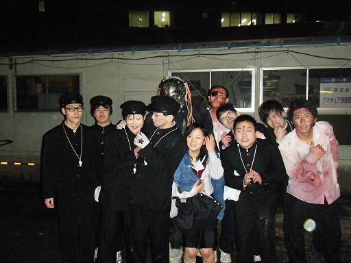 仙台行ってきました! もちろん東北大学学友会演劇部卒業公演「ライチ★光クラブ」を観るために! 道連れにされたのはキミジャグ脚本でお馴染みの三池君と、ニイチ。 ニイチとは久しぶりの再開だったためお互いテンション上がりまくり。 静かに生きて行きたい京都人の三池君にたいそう迷惑をかけてしまいました。 その節はゴメーンネ。 初仙台駅、でけー! 駅近くの牛タン弁当を食べて、いざ東北大学へ! ↑こういうの大好き。手書き感がすごく良い。 自分が通ってた大学と違う大学って不思議。 誰かと間違われて「おーい、バイバーイ」と言われたり、初めて来たのに懐かしかったり。 暗い校内を抜けて、第6ホールと呼ばれる場所まで。 受付を済ませ会場に入ると、古びた秘密基地のセット。汚しの美学。勉強になりました。 席に着く前に可愛い受付のお姉さんから渡されたものが。 でっかいビニールシート。 お姉さんは「本番中、色々飛んでくると思いますので…」と笑顔で。 確かにチラシには「噴出す鮮血!飛び散る臓物!」と書いてある。 でも、実際かの有名な東京グランギニョルも客席に血のりを飛ばして、お客さんにクリーニング代を請求された事があるそうです。ビジュアル系のライブみたい…。 これはもうむしろ記念に血のりをかけてもらわなきゃと、一番前の席へ。 で、感想なんですが…。 すっごくおもしろかった! 歴代おもしろ芝居上位に食い込むくらい! うわー、言葉が足りなすぎて私が言っても陳腐に聞こえてしまう。 でも、観終わってまず感じたのが「みんなも連れて来れば良かった!」でした。 良いお芝居はみんなで観て、ちゃんと吸収したかった。 演技を含めて、演出・舞台装置・照明・音響の完成度の高さ。大学生の作品とは思えないほど。 出演者がみんな個性的でカッコイイ。 原作があんなに人気のあるものを舞台化なんてどうなるのかなーと思ってたけど、ここが舞台化してくれて本当に良かった。 あのかの有名な「なーんか間違ってねえか?」のシーンは、客席女性陣「ぎゃああ」ですよ。悶え。 そしてラストの水! 舞台上に天井から注ぎ込まれる、水・水・水。 タカユキと「舞台に雨降らせたいよね~」とかよく言ってるんですが、雨どころの騒ぎじゃねえ。 本当に水没するんじゃなかろうかというくらいの大量の水。 プリセット大変そうですねーと出演者の方に言ったら、演出でやりたい事をやっただけ。片付けなんて二の次です。と笑顔で答えてくれて、それがなんか胸に響きました。 もちろん舞台から飛んできましたよ。プルップルンの臓物。 客席から起こる小さな笑いと悲鳴。 ただ「すごーい」「かっこいい」だけじゃなくて、あの「観てはいけないものを観てしまった恐怖感」を感じさせてくれた舞台。見世物小屋感覚。やりたいやりたい! 愛しき出演者の方々。みんなずぶ濡れで客だしです。寒そう! タミヤとニコは血だらけ・泥だらけになっても男前でした! 個人的に大好きだったライチ役の役者さん。 動きが人間ぽくない!それでいてキュート! 東京グランギニョルでは嶋田久作が演じたライチ。 背が高くてビックリ。 夜は舞台の感想&ちょっと真面目な話をしながら牛タン鍋をいただきました。 仙台って気軽に行けるもんなんだなー。 とにかくいいお芝居だった!ありがとうございました! PR 突然ですが、無類のスーパー銭湯好きです。