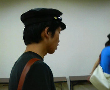 被ってないのは私と座長と、もう一人くらい。 みんな衣裳さんに支給された学帽を被って、何かちょっといい感じ。 これ見よがしに自慢されたり。ちくしょー。 ずっと羨ましいなー、いいなー、と思っていたのですが・・・。 この前・・・。 とうとう・・・。 買っちゃった! 水戸泉町三丁目の太田屋学生服店にて、2,000円で購入。うっはー。 何かもう学帽って作ってないんですって。 このお店にもあるだけらしいので、欲しい人は早めにお店まで! お店のご主人がとても優しい方で、学帽のかっこいい被り方を伝授してくれました。 できるだけ潰して頭に乗っけるくらいがso coolらしいです。 さぞみんな羨ましがるだろうと思ったら、おそろいの校章がついていなかったせいか 他校生扱いされました。ちくしょー。 エアモルド デム マン!エアモルド!(光クラブごっこ、流行中)